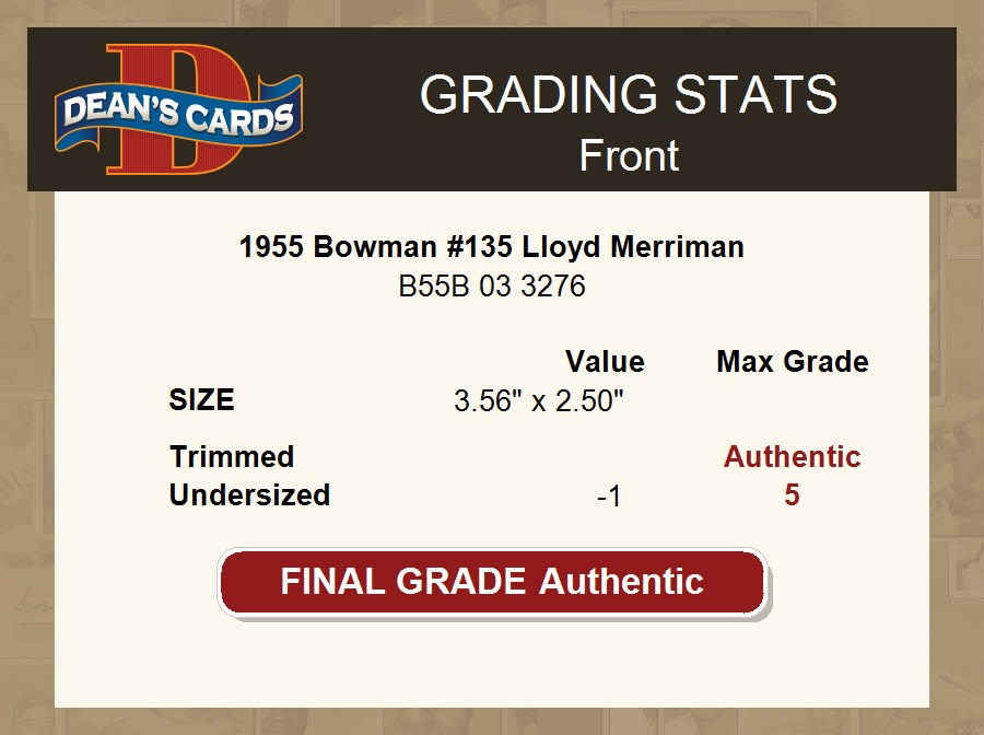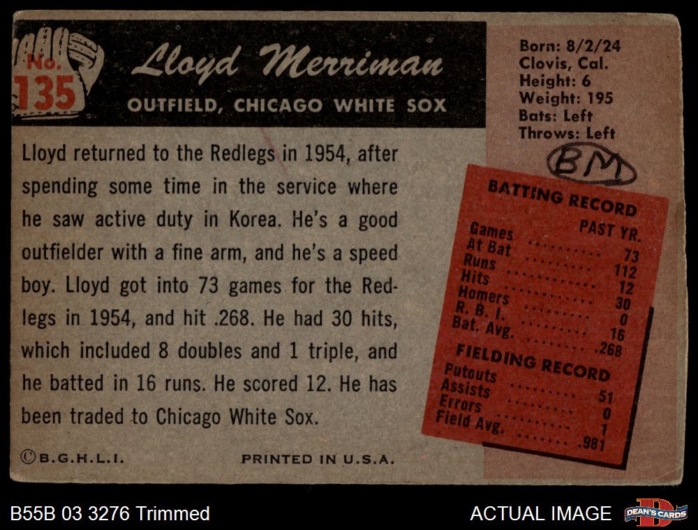 1955 Bowman #135 Lloyd Merriman AUTHENTIC