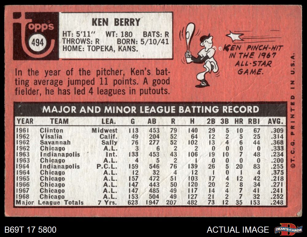 1969 Topps #494 Ken Berry 1 - POOR