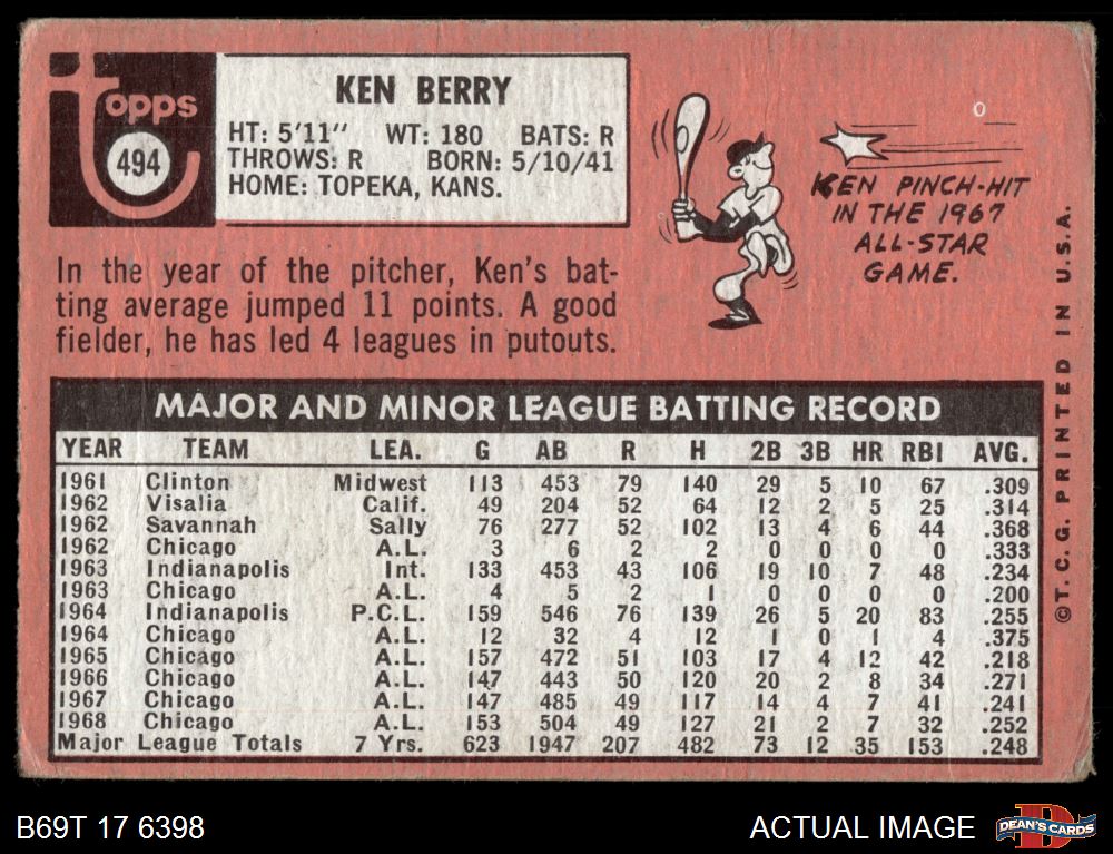 1969 Topps #494 Ken Berry 1.5 - FAIR