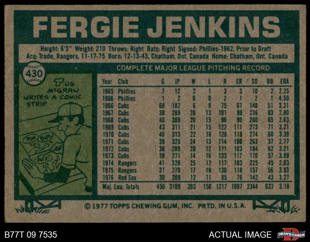 1977 Topps #430 Fergie Jenkins 3 - VG