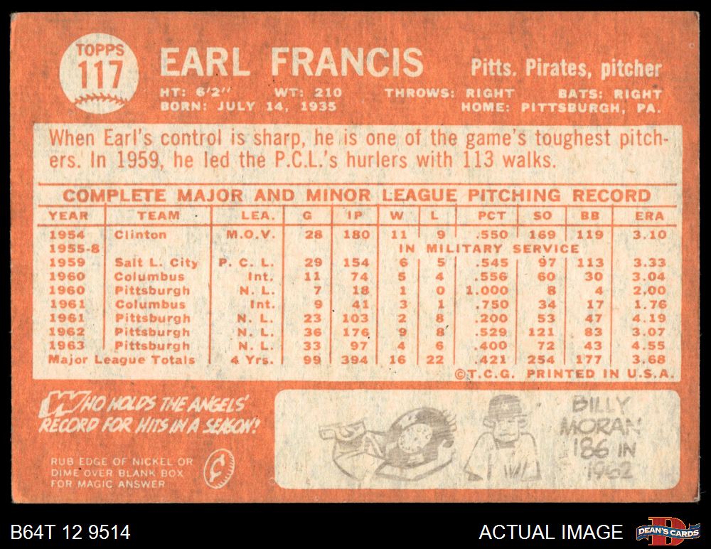 1964 Topps #117 Earl Francis 3.5 - VG+