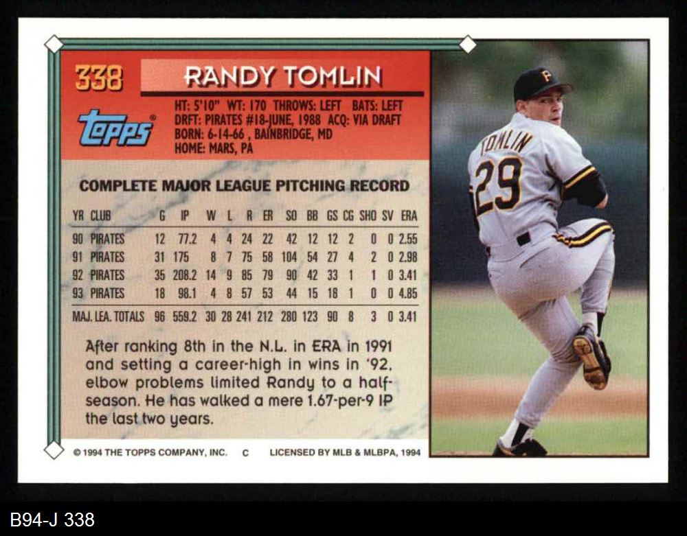 1994 Topps #338 Randy Tomlin 8 - NM/MT