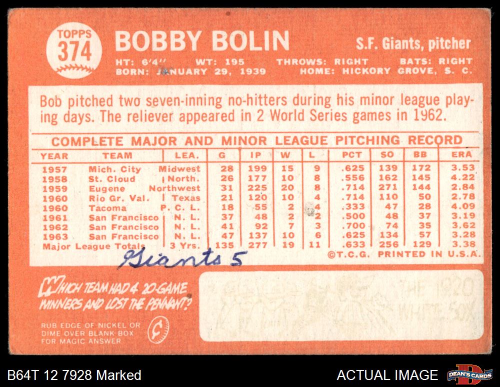 1964 Topps #374 xSTR Bobby Bolin 1.5 - FAIR