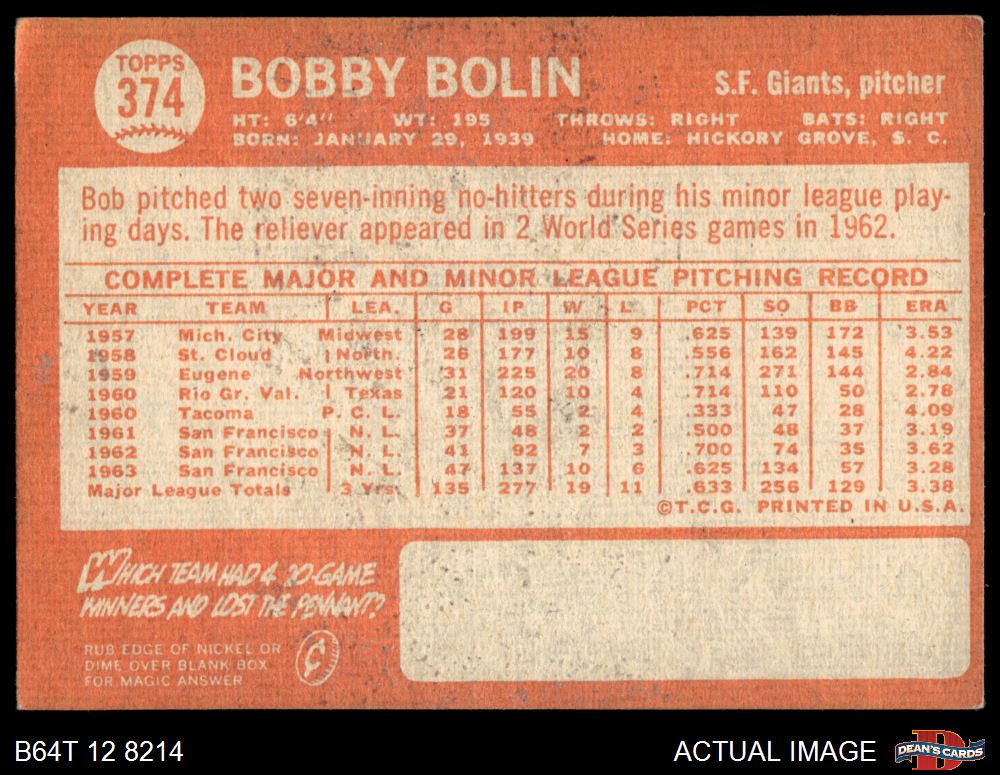 1964 Topps #374 xSTR Bobby Bolin 2 - GOOD