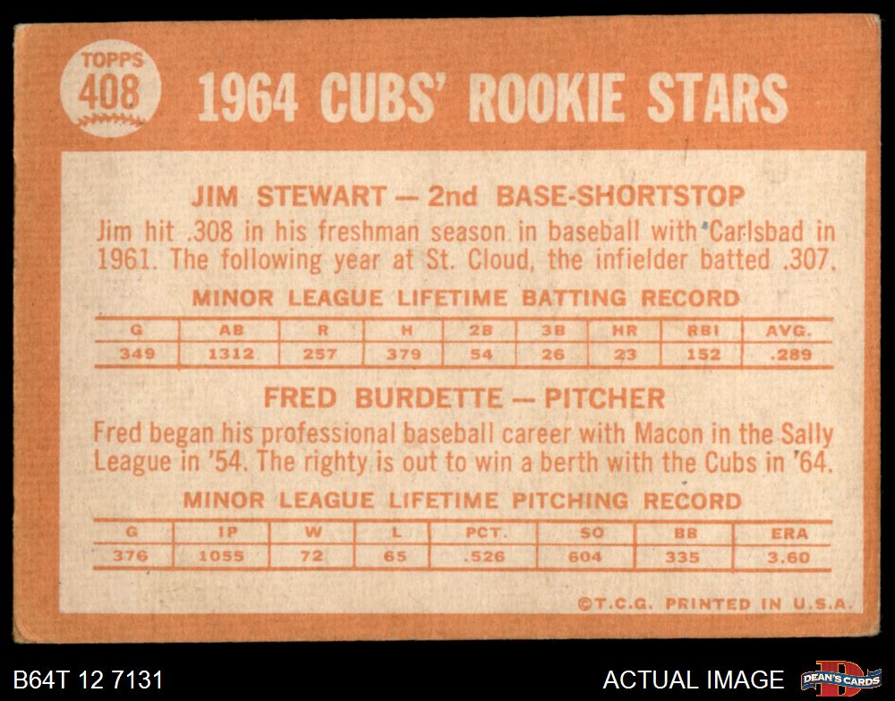 1964 Topps #408 - Jimmy Stewart / Fred Burdette Cubs Rookies 1 - POOR