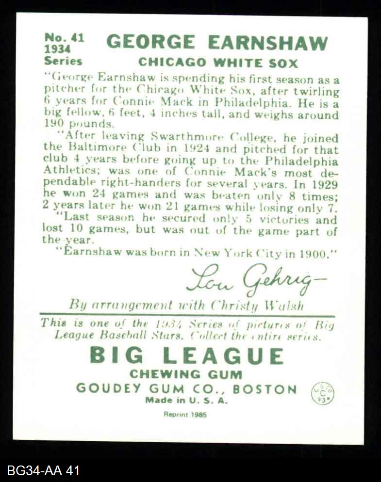 1934 Goudey Reprint #41 George Earnshaw
