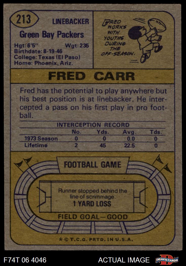 1974 Topps #213 Fred Carr 4 - VG/EX