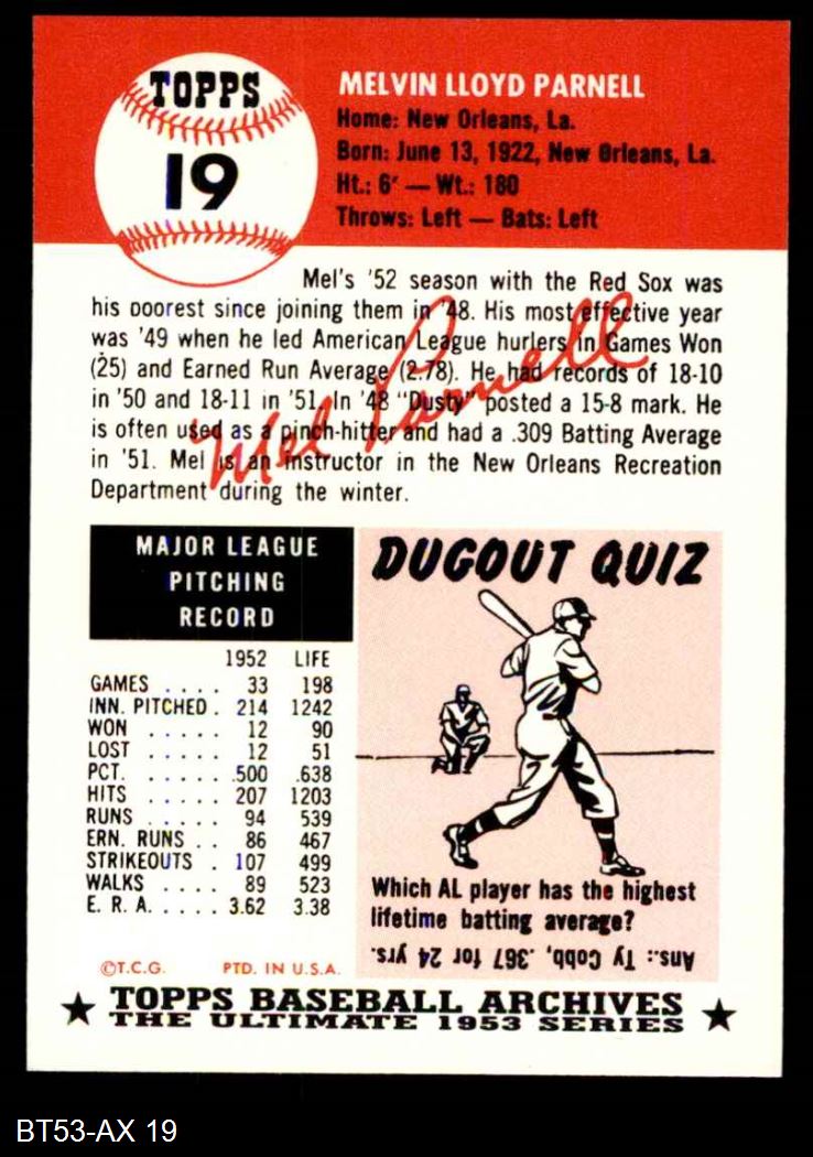 1953 Topps Archives #19 Mel Parnell
