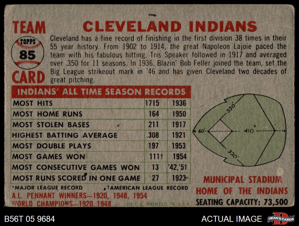 1956 Topps #85 CEN Indians Team 1.5 - FAIR