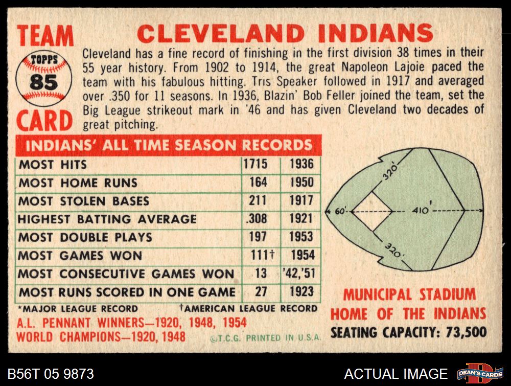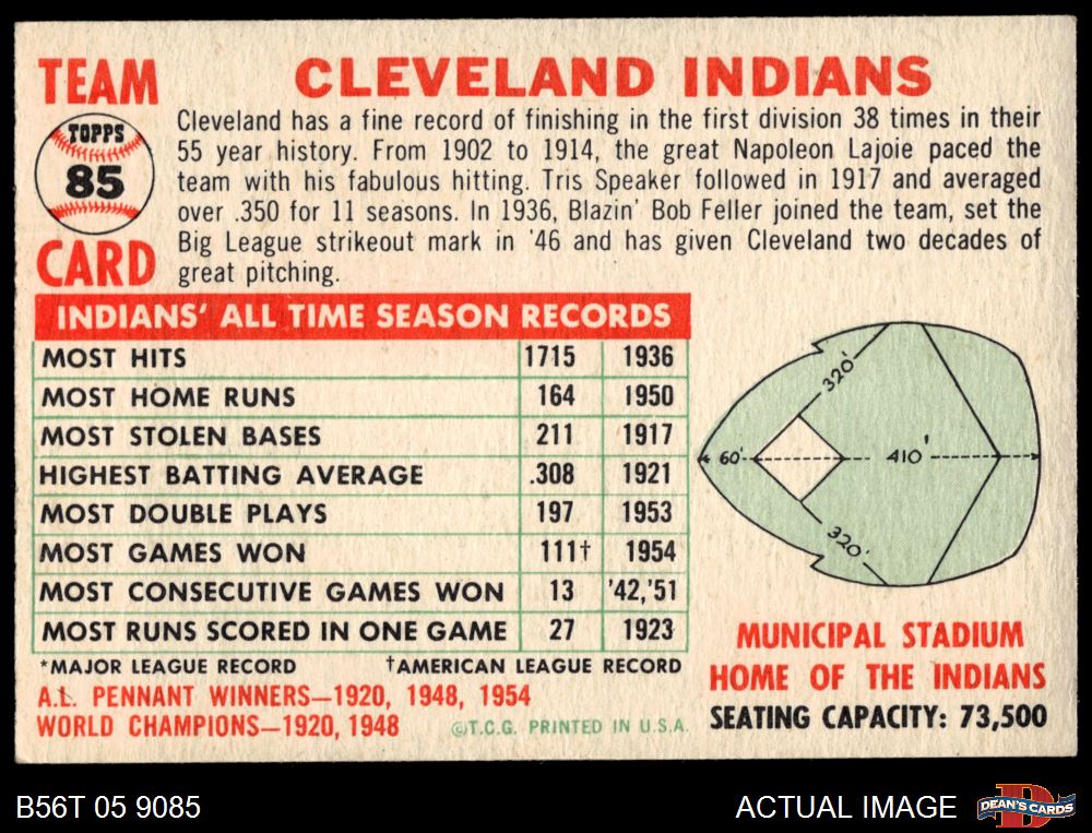 1956 Topps #85 CEN Indians Team 6 - EX/MT