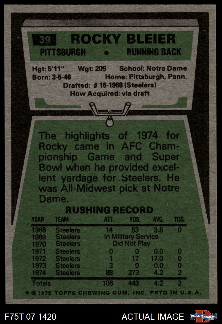 1975 Topps #39 Rocky Bleier 5 - EX