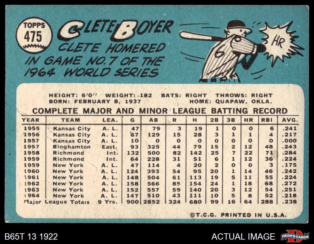 1965 Topps #475 Clete Boyer 1.5 - FAIR