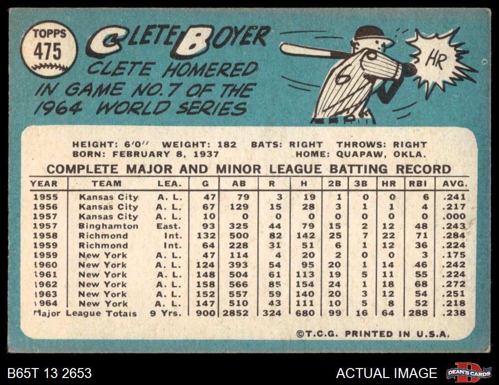 1965 Topps #475 Clete Boyer 3.5 - VG+