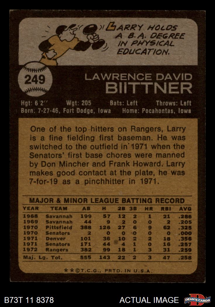 1973 Topps #249 Larry Biittner