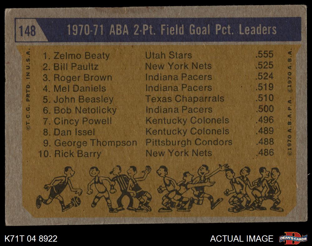 1971 Topps #148 - Zelmo Beaty / Billy Paultz / Roger Brown ABA Field Goal Pct Leaders 1.5 - FAIR