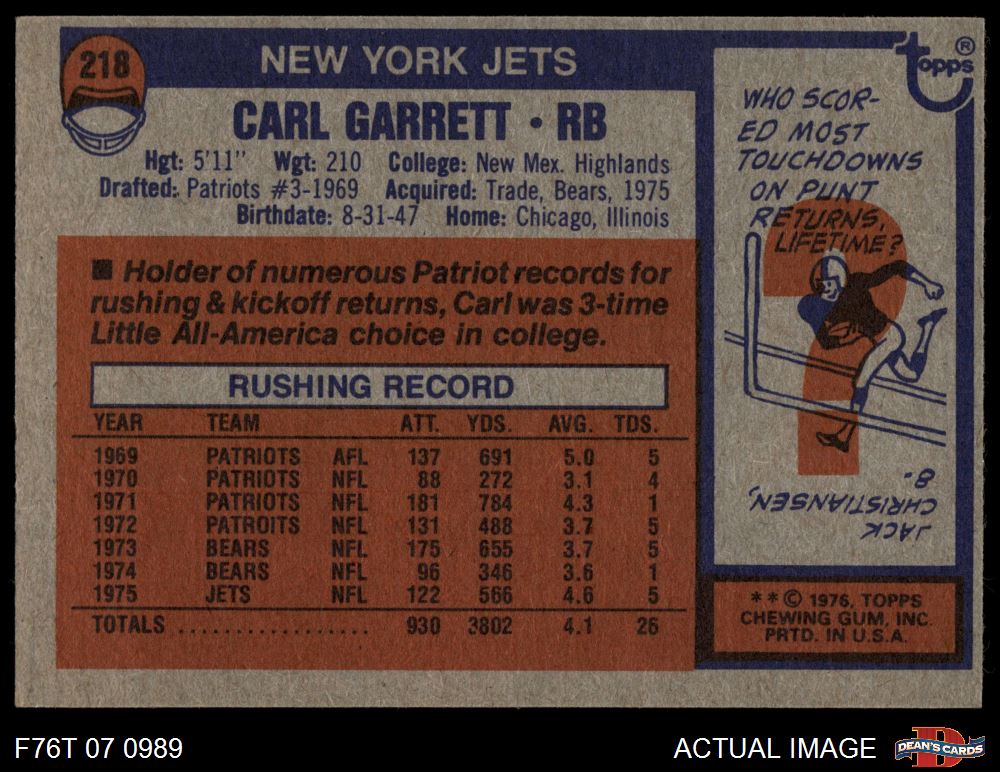 1976 Topps #218 Carl Garrett 4 - VG/EX