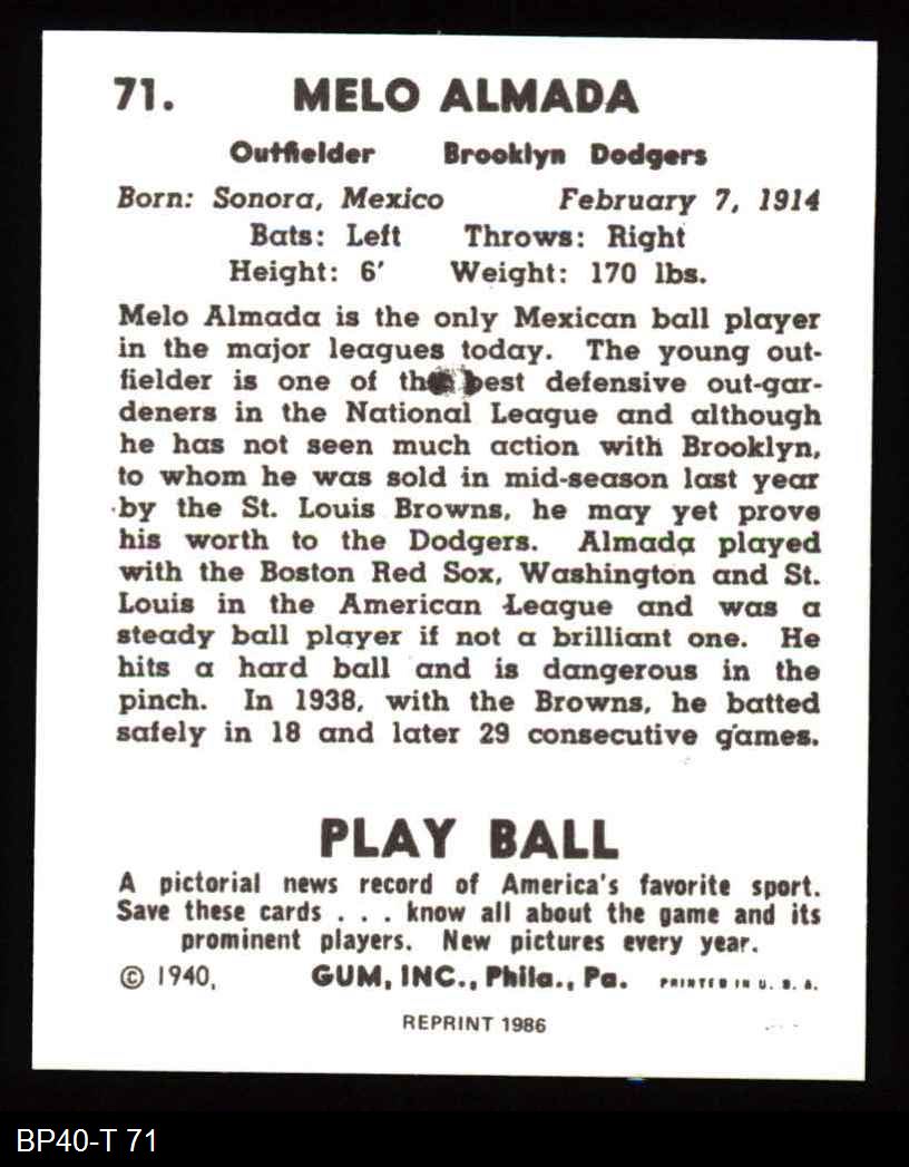 1940 Play Ball Reprint (1,465 available)1940 Play Ball Reprint Dodgers (103 available)