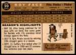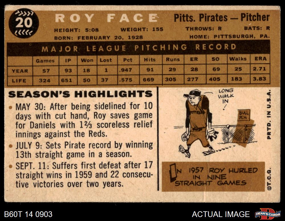 1960 Topps #20 Roy Face 1.5 - FAIR