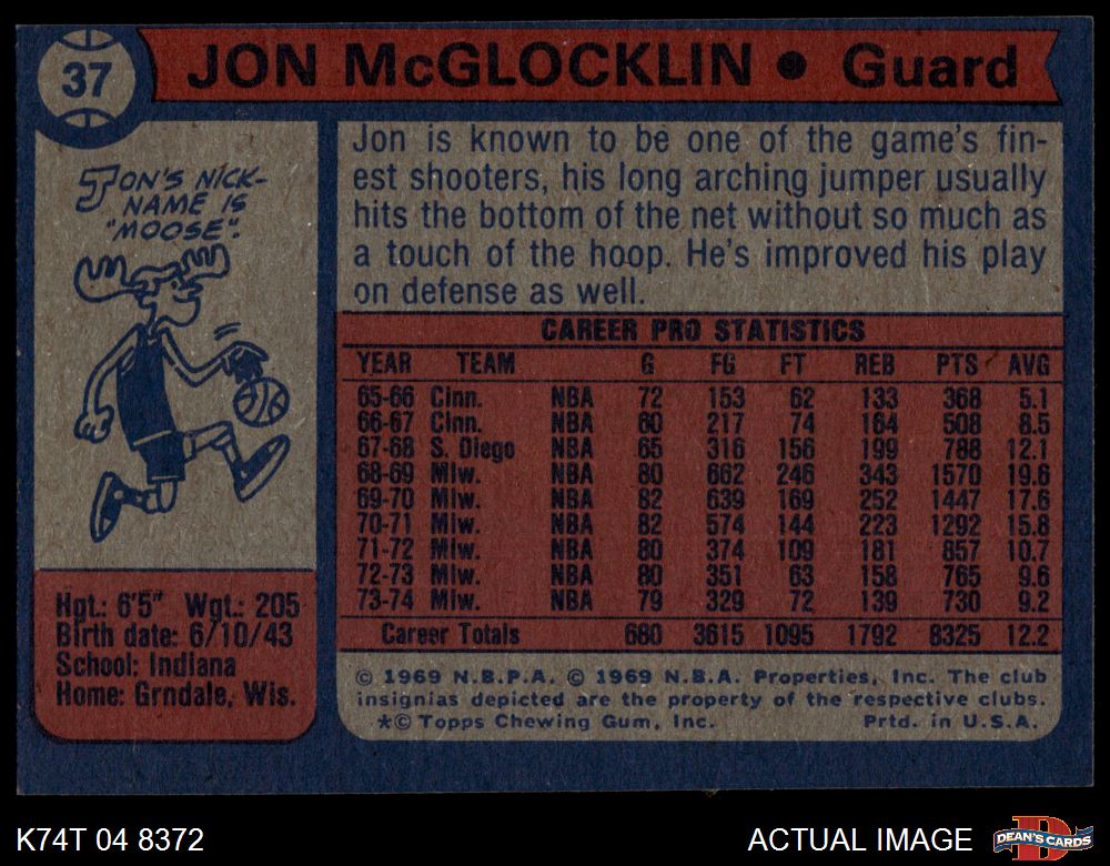 1974 Topps #37 Jon McGlocklin