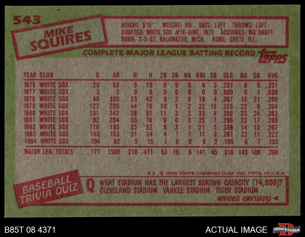 1985 Topps #543 Mike Squires 8.5 - NM/MT+
