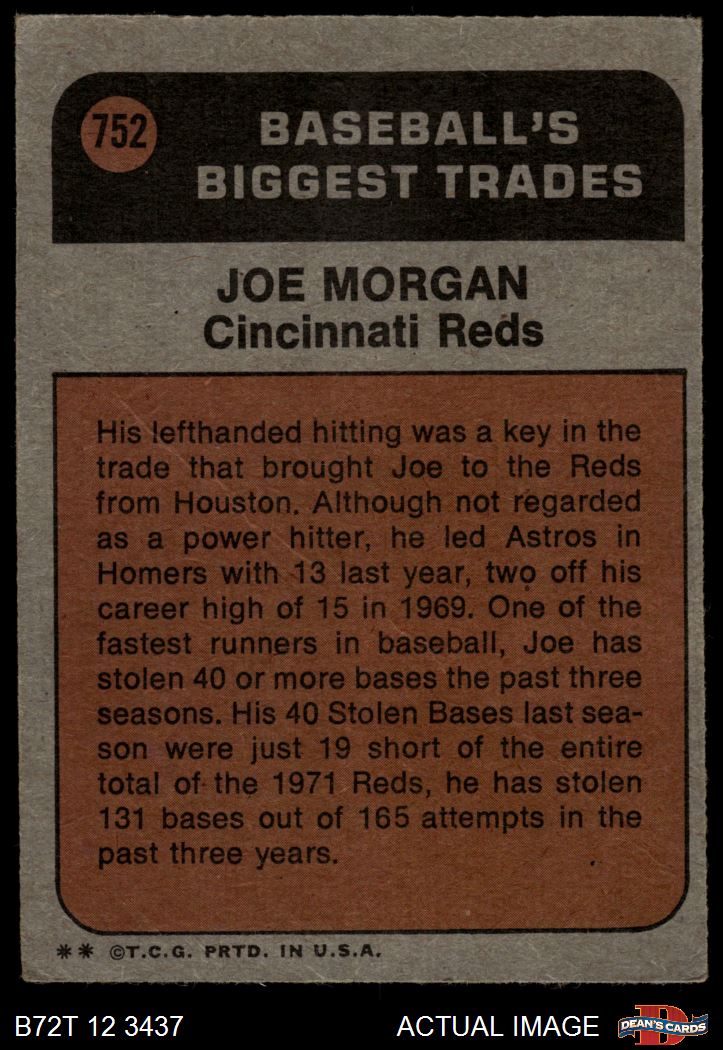 1972 Topps #752 - Joe Morgan Traded 1.5 - FAIR