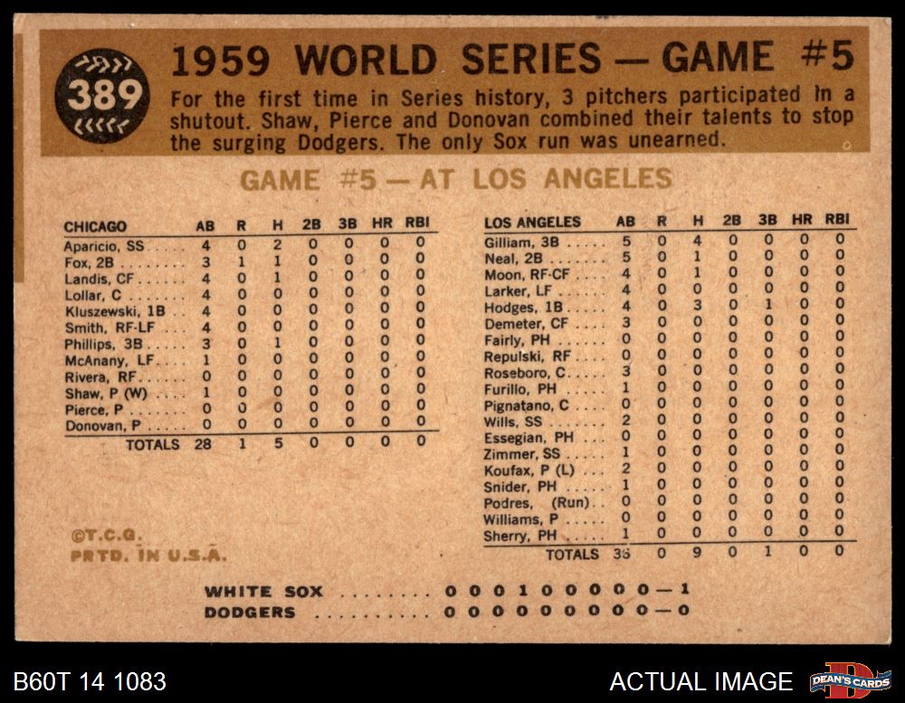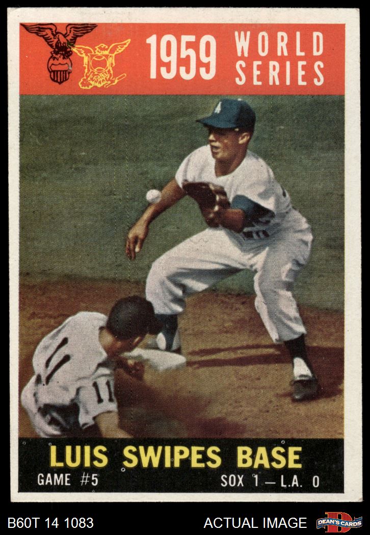 1960 Topps #389 - Luis Aparicio 1959 World Series - Game #5 - Luis Swipes Base 5 - EX