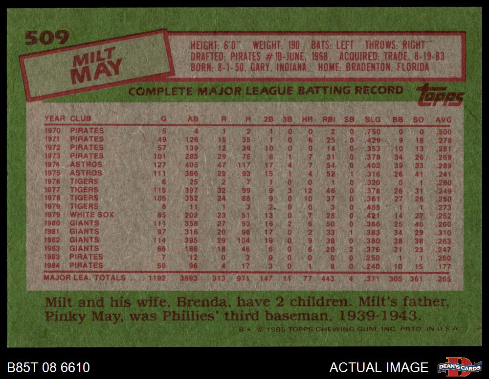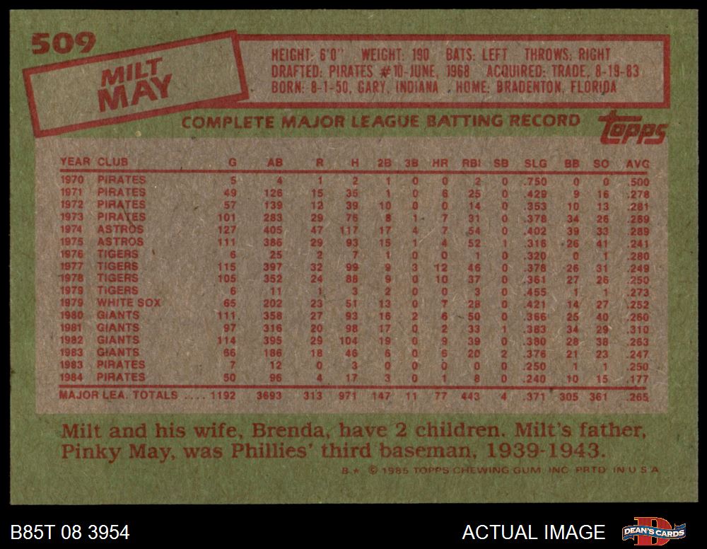 1985 Topps #509 Milt May