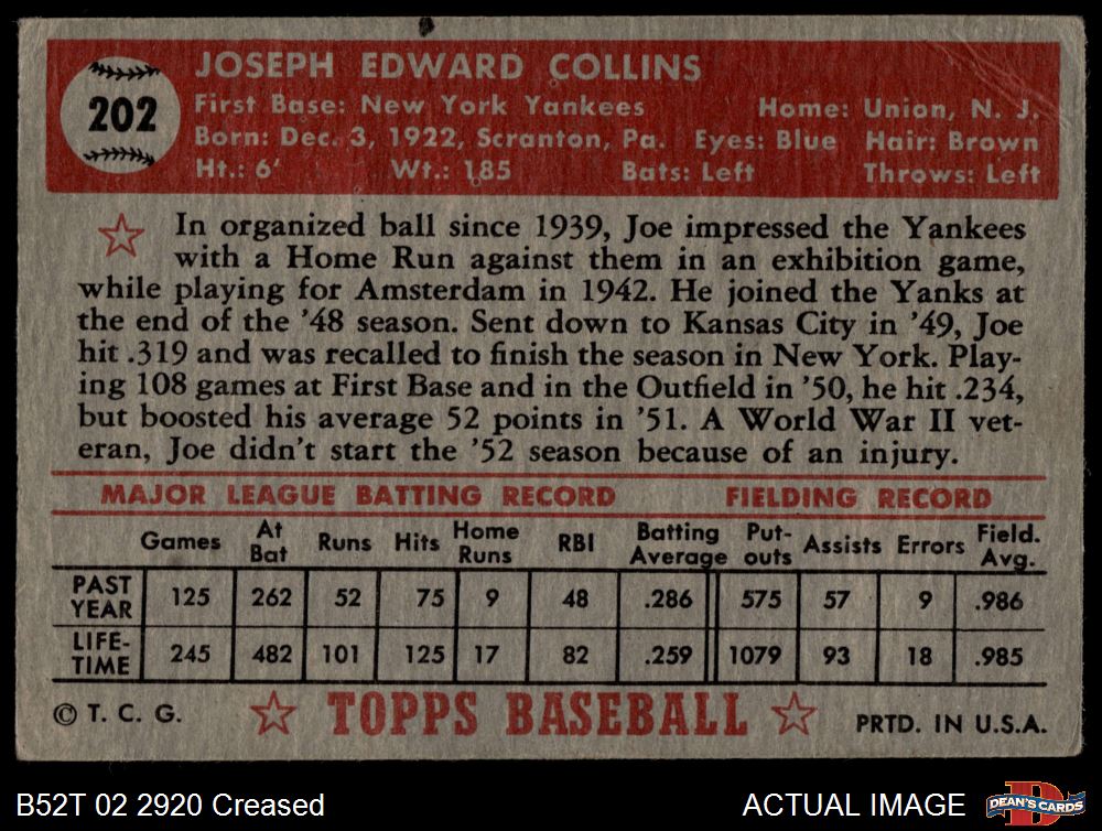 1952 Topps #202 Joe Collins 2 - GOOD