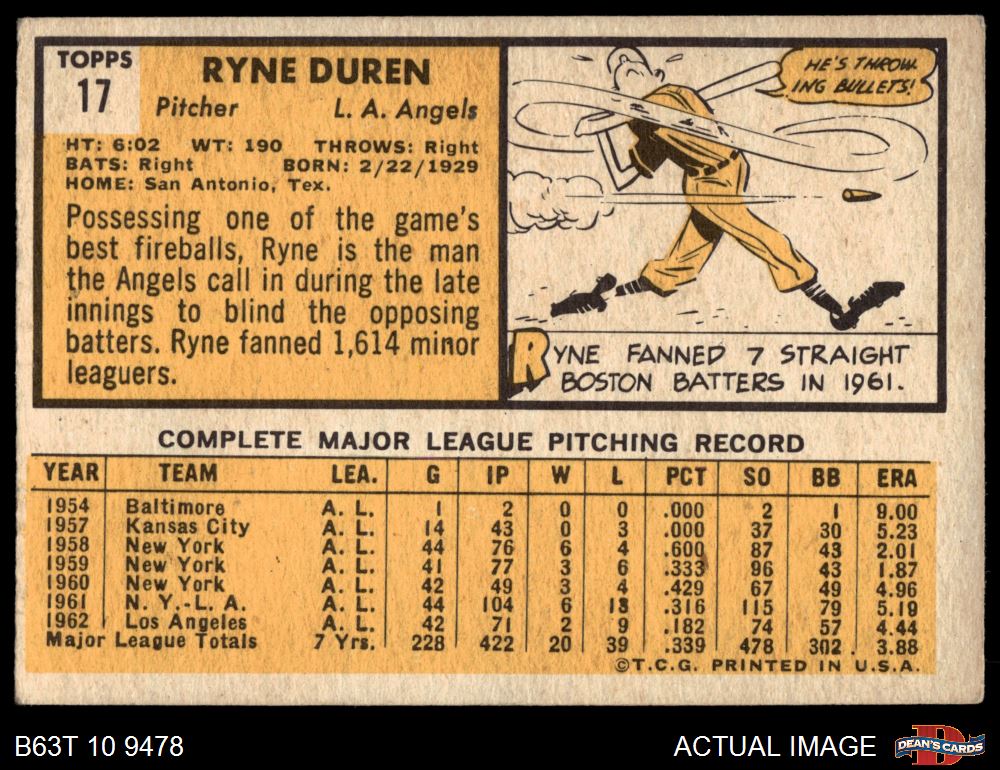 1963 Topps #17 Ryne Duren 2 - GOOD