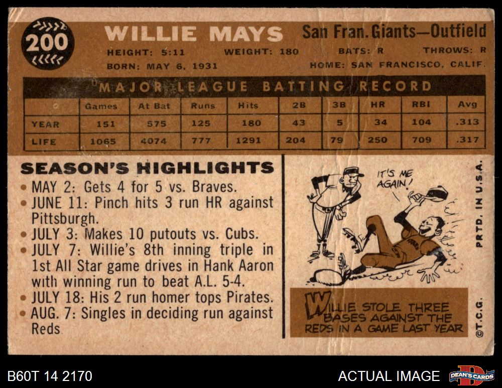 1960 Topps #200 Willie Mays 1.5 - FAIR