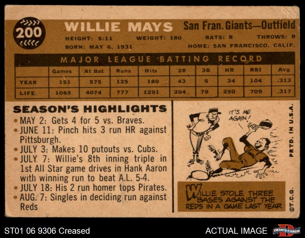 1960 Topps #200 Willie Mays 2 - GOOD