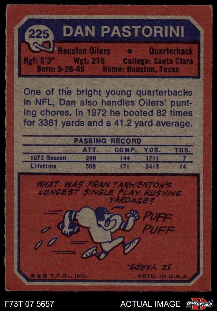 1973 Topps #225 Dan Pastorini Front Thumbnail