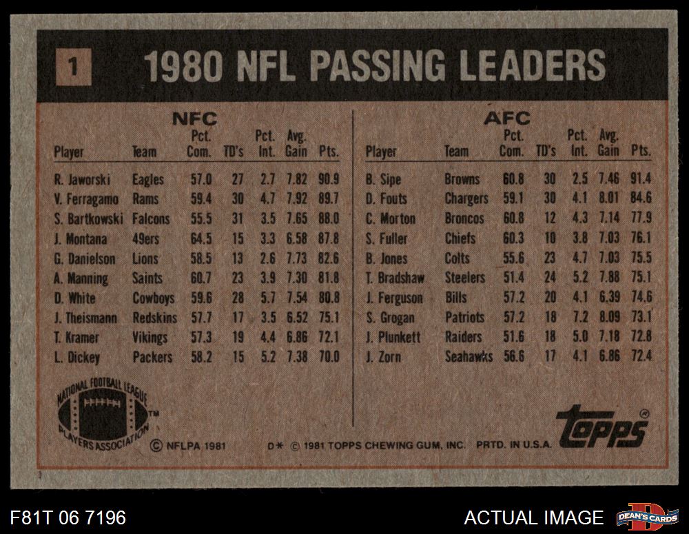 1981 Topps #1 - Ron Jaworski / Brian Sipe Passing Leaders 7 - NM