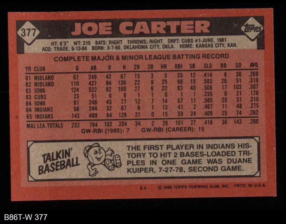 1986 Topps #377 Joe Carter