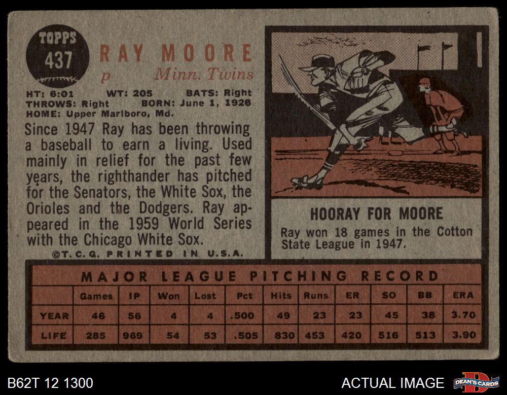 1962 Topps #437 Ray Moore Front Thumbnail