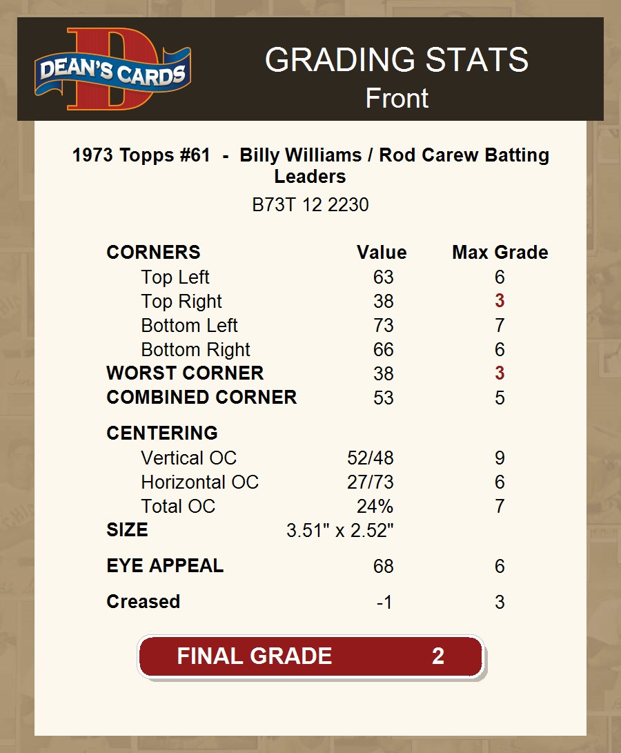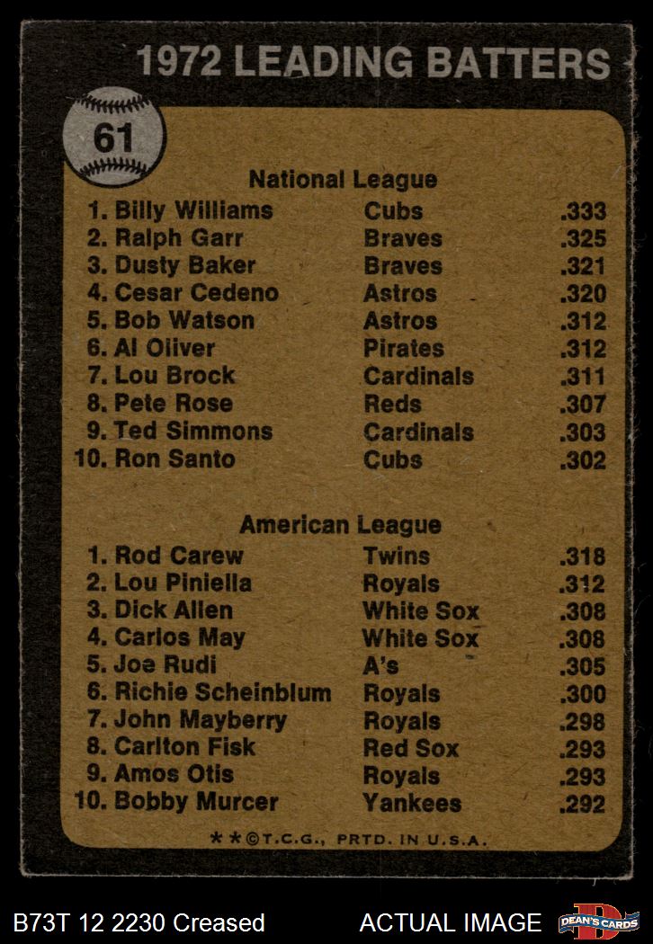 1973 Topps #61 - Billy Williams / Rod Carew Batting Leaders 2 - GOOD