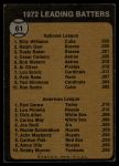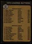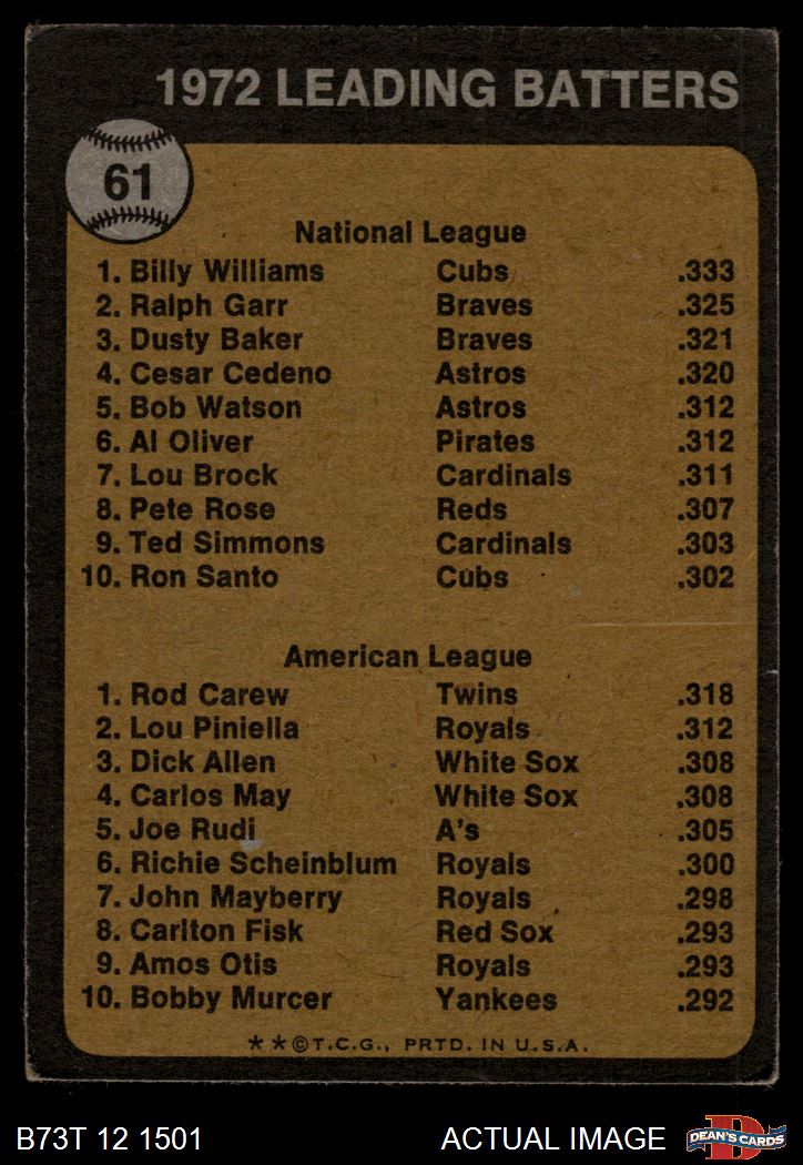 1973 Topps #61  -  Billy Williams / Rod Carew Batting Leaders Front Thumbnail