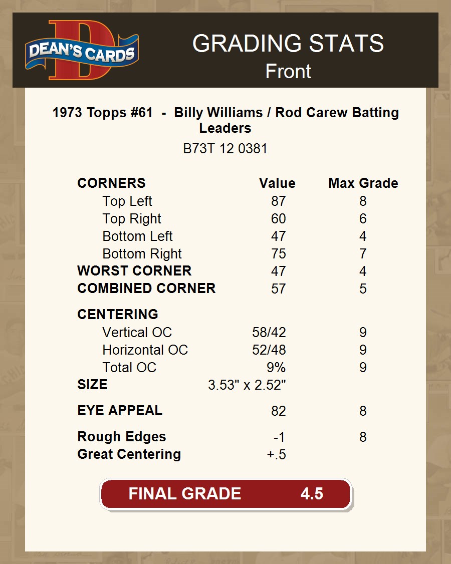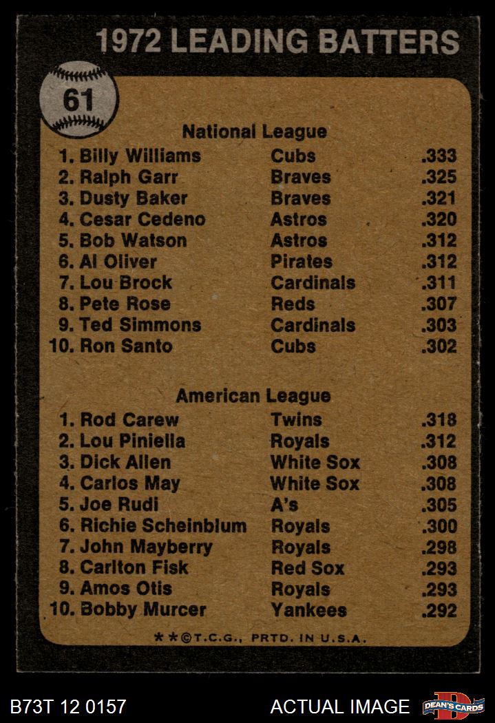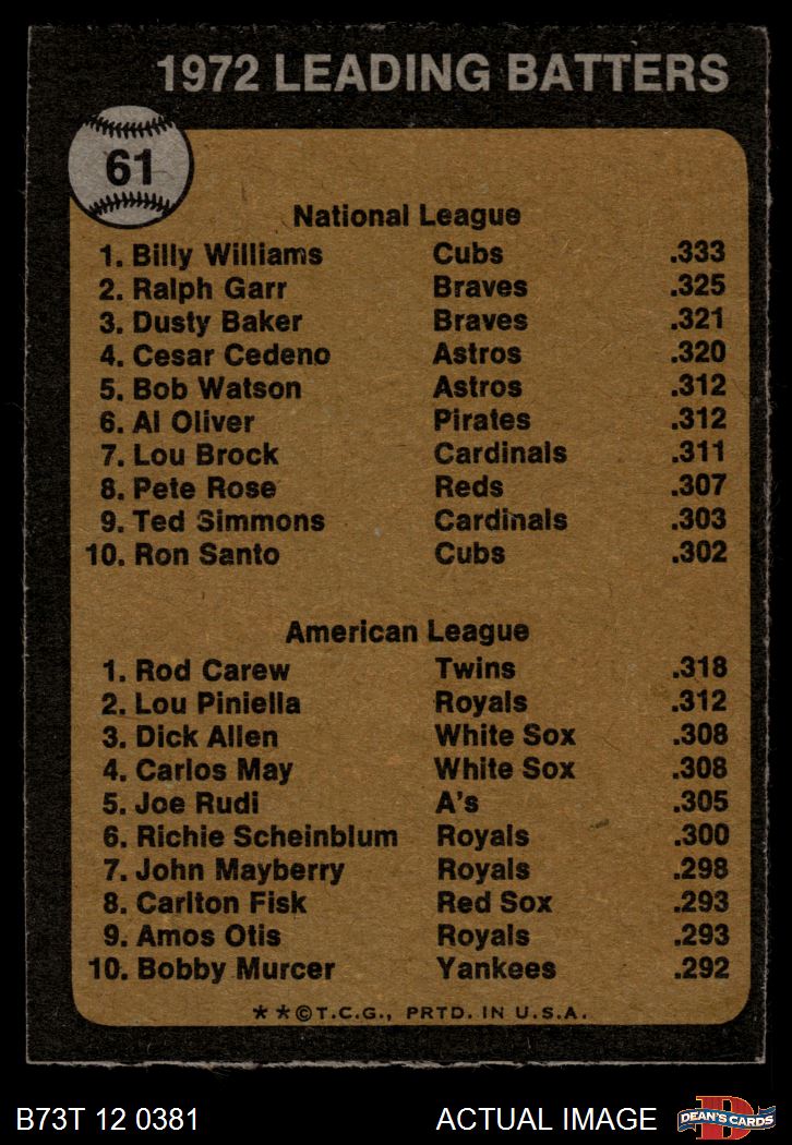 1973 Topps #61 - Billy Williams / Rod Carew Batting Leaders 4.5 - VG/EX+