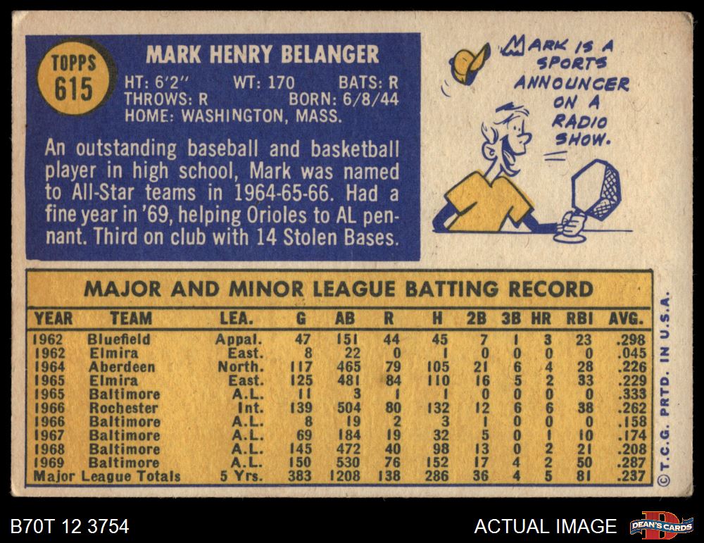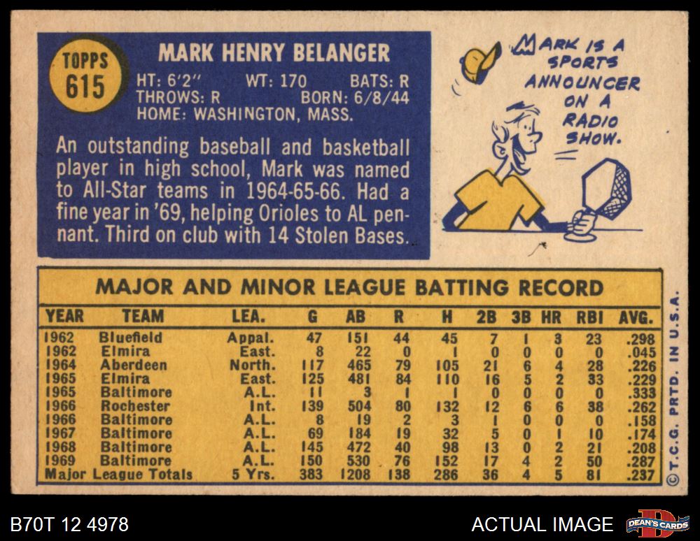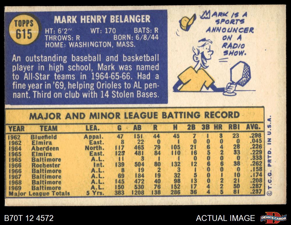 1970 Topps #615 Mark Belanger 4 - VG/EX