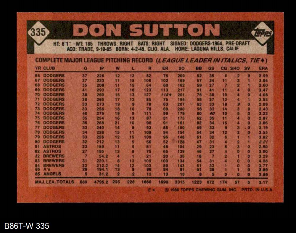 1986 Topps #335 Don Sutton