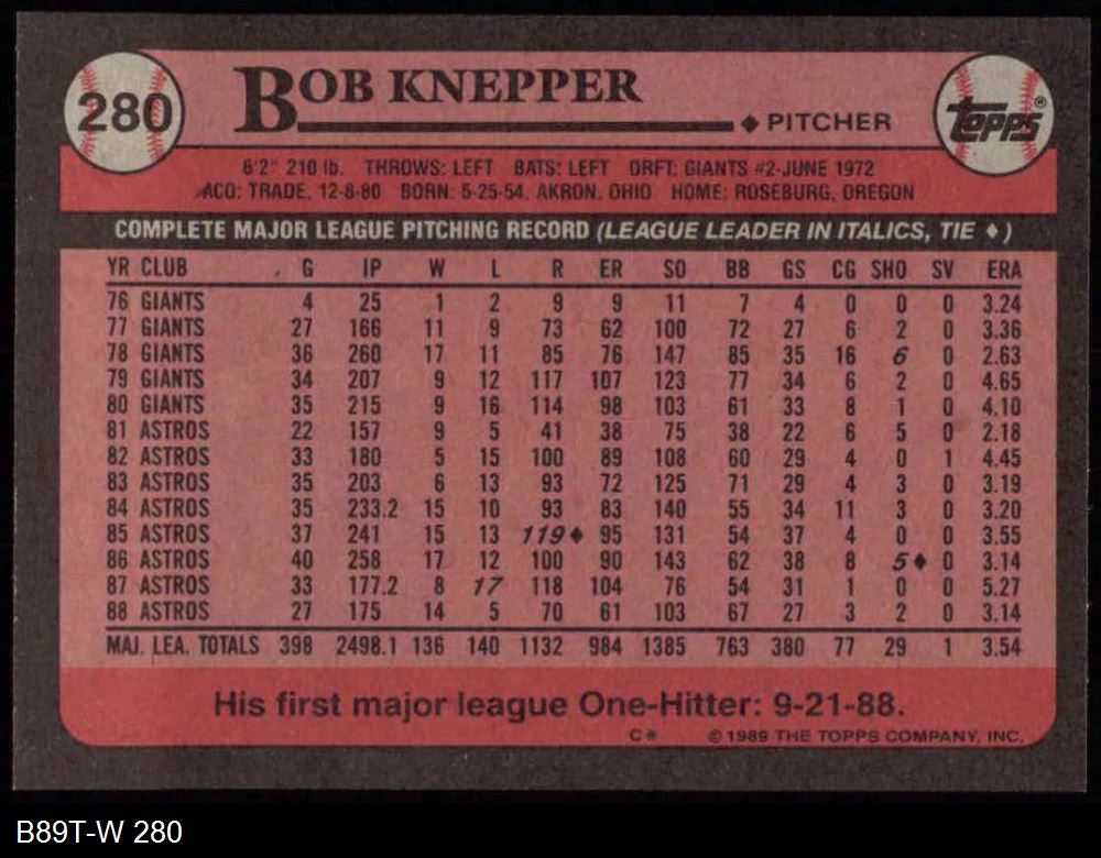 1989 Topps #280 Bob Knepper 8 - NM/MT
