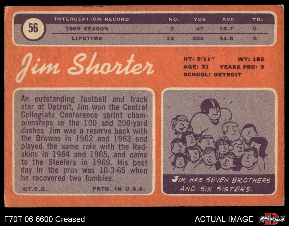1970 Topps #56 Jim Shorter Front Thumbnail