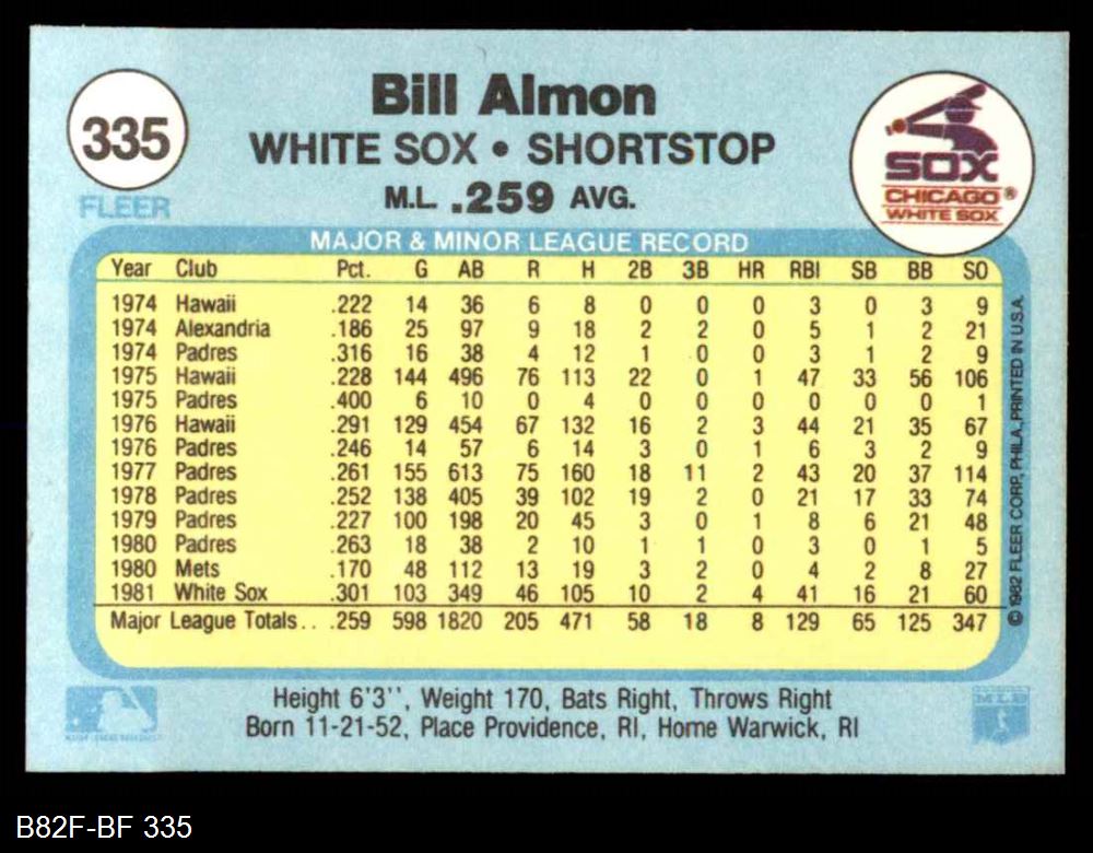 1982 Fleer #335 Bill Almon 8 - NM/MT