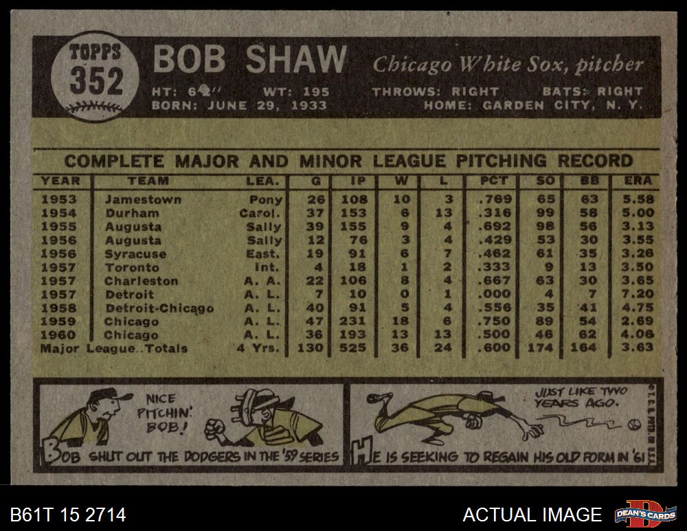 1961 Topps #352 Bob Shaw