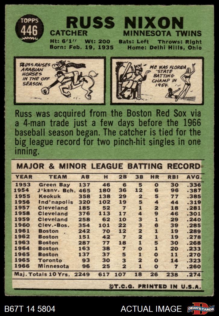 1967 Topps #446 Russ Nixon 3 - VG