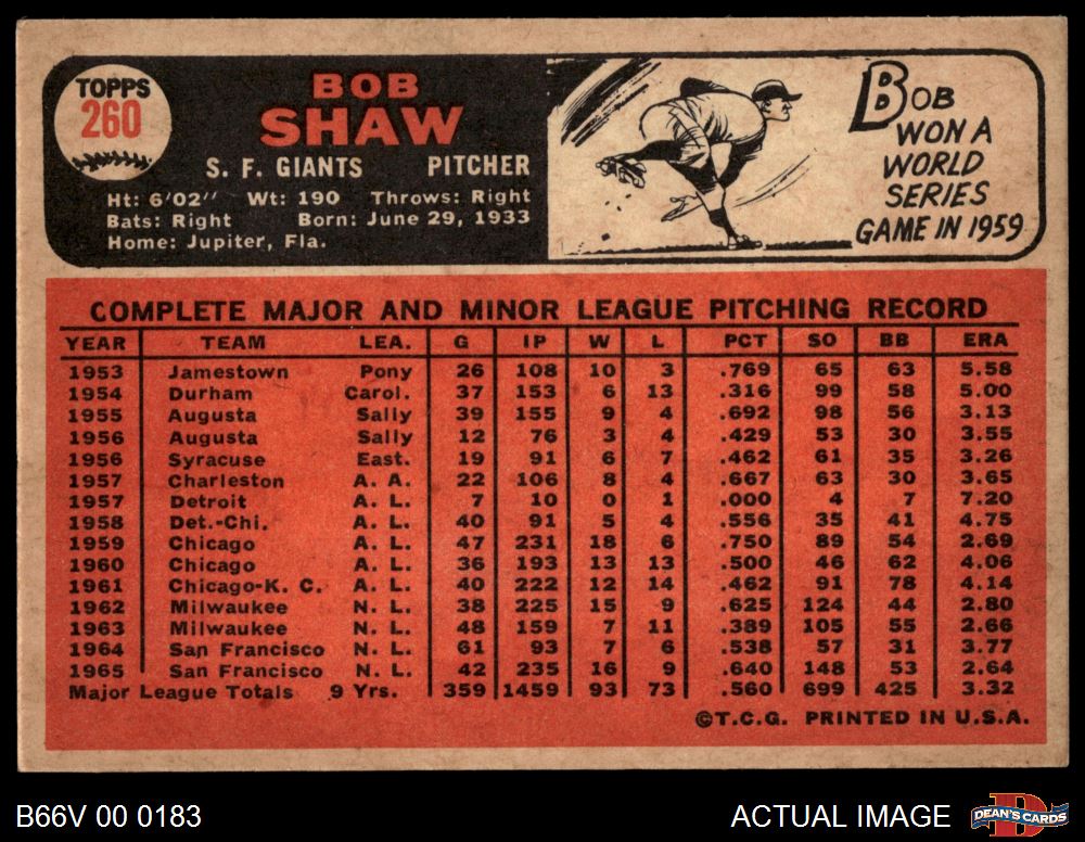 1966 Topps Venezuelan #260 Bob Shaw 5 - EX
