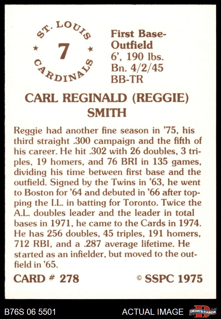 1975 SSPC #278 Reggie Smith 6 - EX/MT