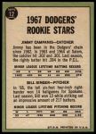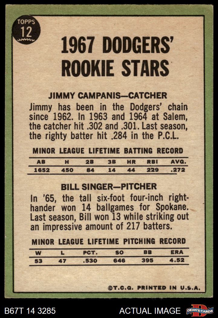 1967 Topps #12 - Bill Singer / Jim Campanis Dodgers Rookies 4 - VG/EX