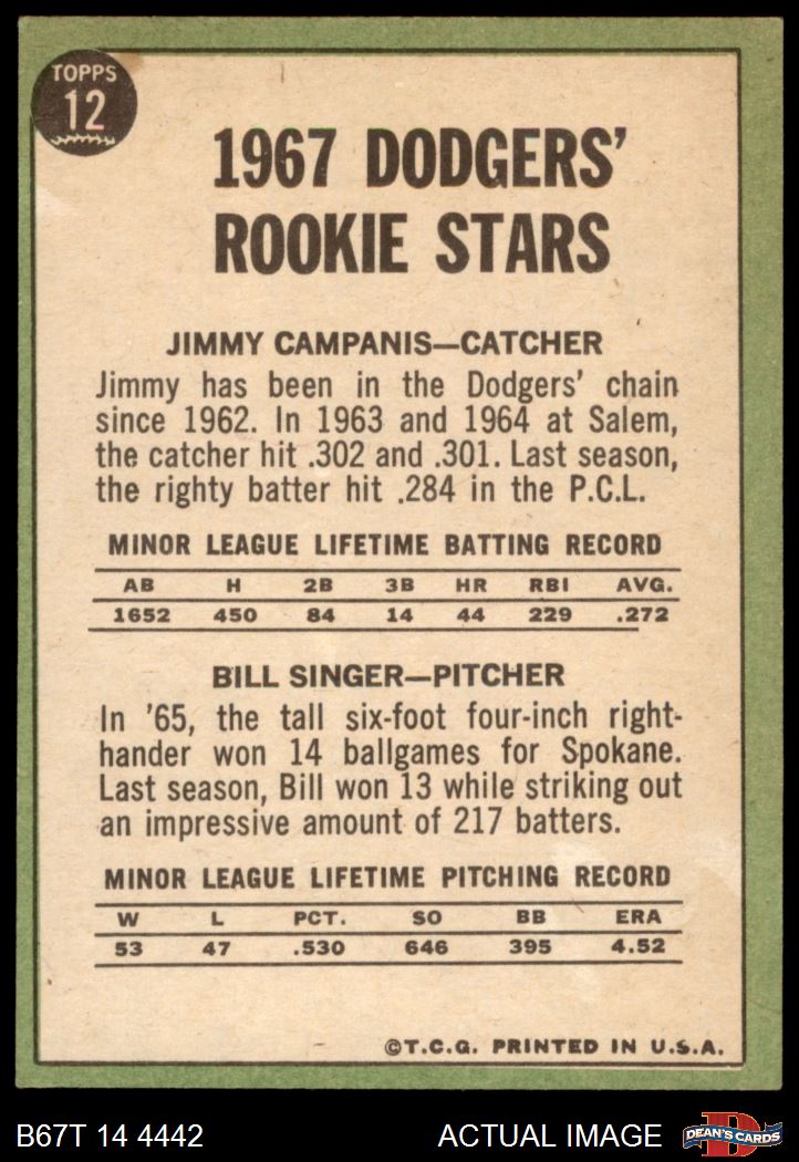 1967 Topps #12 - Bill Singer / Jim Campanis Dodgers Rookies 5 - EX
