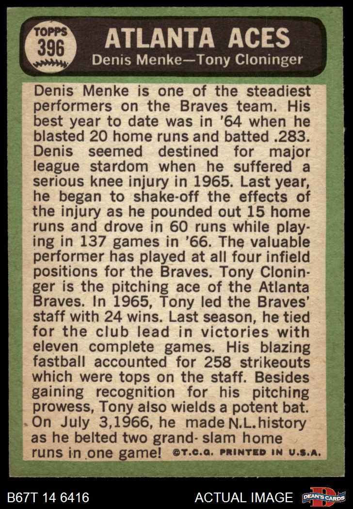 1967 Topps #396 - Denis Menke / Tony Cloninger Atlanta Aces 4 - VG/EX